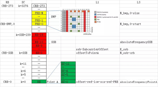 1. absoluteFrequencyPointA + offsetToPointA×15×12/5 + ssb-SubcarrierOffset×15/5 = absoluteFrequencySSB - 10×12×subCarrierSpacingCommon/5