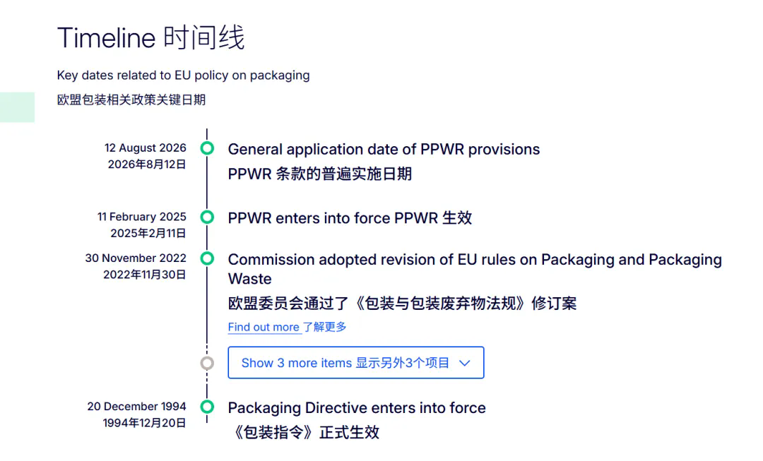 建议企业结合指南草案及官方答疑,尽早开展PPWR相关合规准备,重点关注PFAS、可回收性等核心要求,并同步跟踪后续细则进展。需要指出的是,PPWR更多配套实施细则预计将在未来几年内陆续发布,具体合规要求仍以欧盟最终正式发布的法规及配套文件为准。
